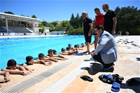 Battalgazi Belediye Başkanı Bayram Taşkın, Orduzu Pınarbaşı Olimpik Açık Yüzme Havuzu'nda yüzme eğitimi gören çocukları ziyaret etti. Başkan Taşkın, gençlerin spor yaparak gelişimlerine katkıda bulunmayı hedeflediklerini belirtti.