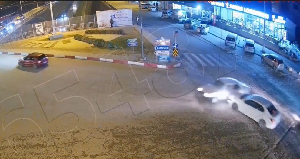 Battalgazi Kavşağı’nda ise ışık ihlali yapan bir aracın, diğer yönden gelen araçla çarpıştığı anlar kameralara yansıdı.