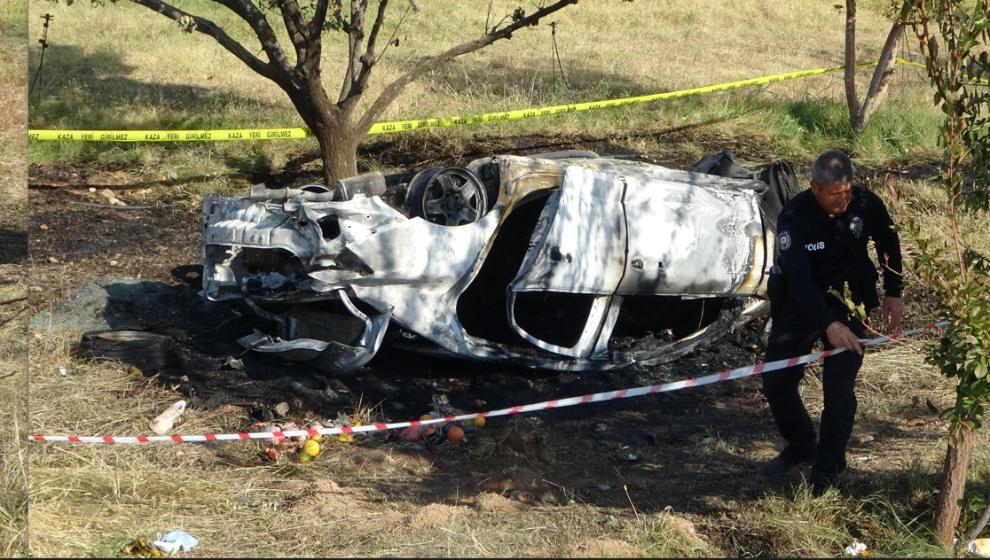 Malatya'da sürücünün kontrolünden çıkarak kayısı bahçesine uçan otomobil yanarak küle döndü. Feci kazada 2 kişi hayatını kaybetti.