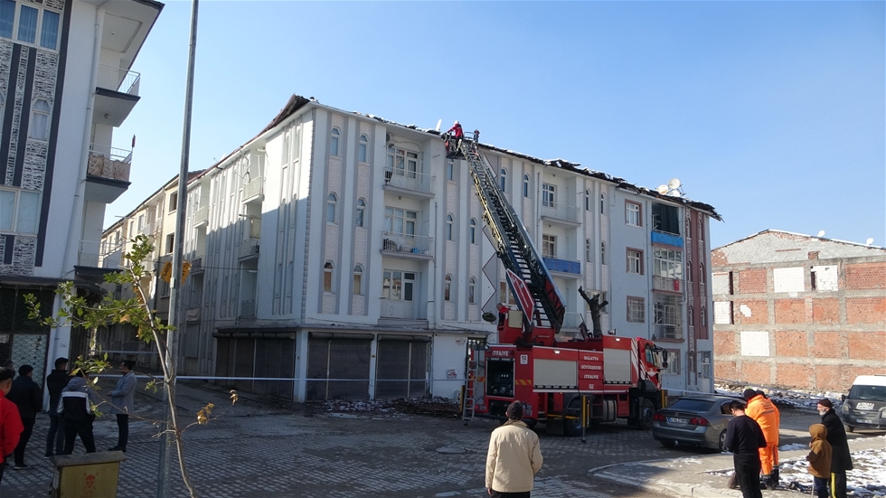 Binanın çevresi güvenlik çemberi ile kapatılırken, Malatya Büyükşehir Belediyesi İtfaiye ekipleri de çatıdan sarkan ve tehlike arz eden parçaları da kaldırdı.