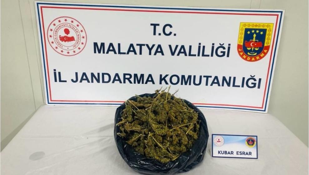 İl Jandarma Komutanlığı Narkotik Suçlarla Mücadele Şube Müdürlüğü, KOM Şube Müdürlüğü ve Battalgazi İlçe Jandarma Komutanlığı ekiplerince yürütülen çalışmalar kapsamında, 1 kilo 500 gram esrar maddesi ele geçirildi. Operasyon kapsamında 1 şüpheli şahıs yakalanarak gözaltına alındı.