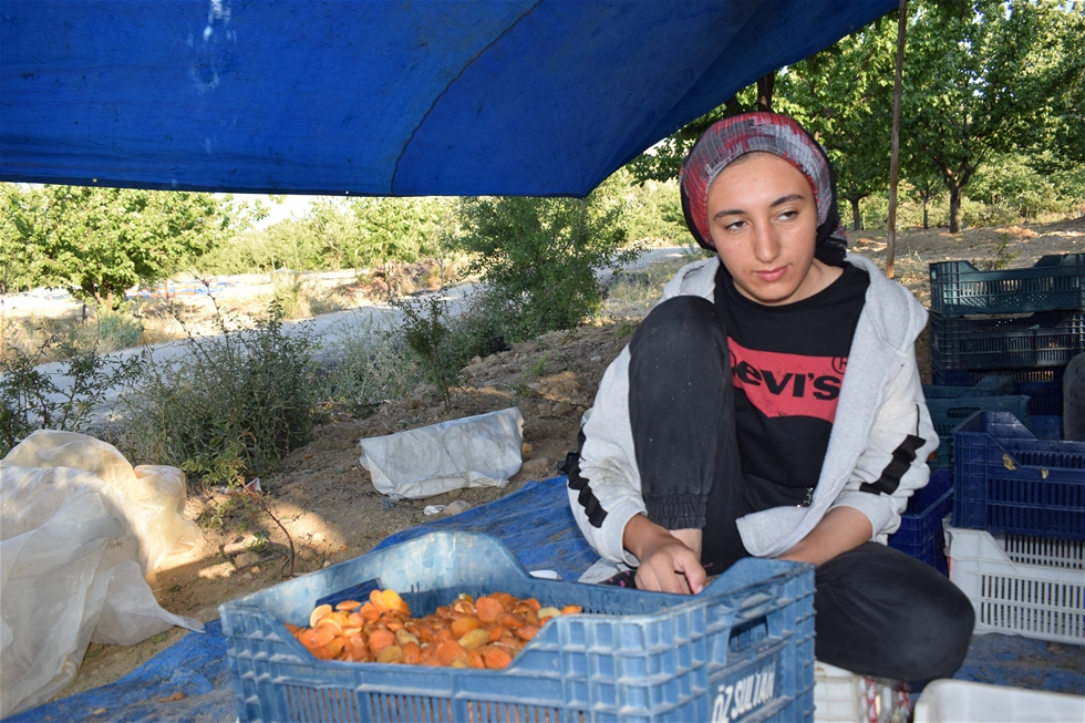 Akçadağ ilçesi Resuluşağı Mahallesi'nde kayısı hasatında çalışan mevsimlik tarım işçilerinden kardeşler Elif ile Aslan Kılıç, 800 TL yevmiye ile çalıştıklarını belirterek, üç haftadır devam eden hasatta sona geldiklerini kaydetti.