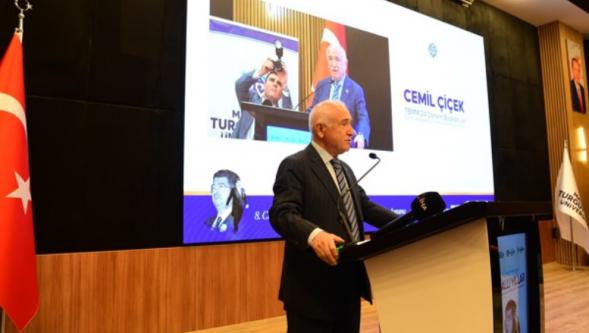 Rektör Bentli’nin ardından konuşan Cemil Çiçek, konuşmasının başında vefa ve kadirşinaslık kavramlarının toplumları ayakta tutan temel değerler arasında yer aldığını belirtti. Bu tür anma programlarının yalnızca bir hatırlama faaliyeti olmadığını, aynı zamanda geçmişi doğru anlamaya ve bugünü daha sağlıklı değerlendirmeye imkân sunduğunu ifade eden Çiçek, Turgut Özal’ın Türkiye’nin yakın siyasi tarihinde çok özel bir yerde durduğunu söyledi. Çiçek, yaklaşık 60 yıllık siyasi tecrübesine dayanarak Özal’ı, “yakın siyasi tarihimizin en önemli şahsiyetlerinden biri” olarak niteledi.