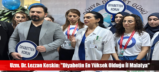 Dünya Diyabet Günü dolayısıyla Malatya Eğitim ve Araştırma Hastanesi’nde düzenlenen etkinlikte konuşan Endokrinoloji Uzmanı Dr. Öğretim Üyesi Lezzan Keskin, “Yaklaşık olarak her beş kişiden birisi diyabet hastası. Türkiye'de diyabet oranının en yüksek olduğu il Malatya” dedi.