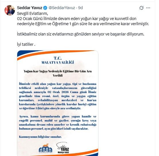 Vali Bey Açıkladı,Yarin Okullar !