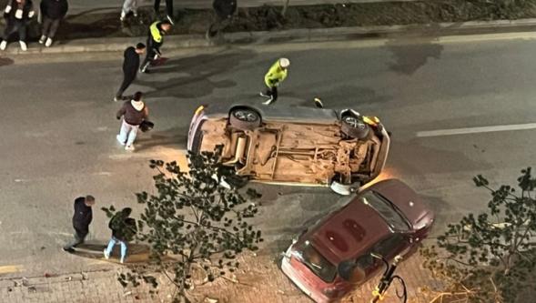 Kontrolünden Çıktı,Park Halindeki Araca Çaptı,Ters Döndü
